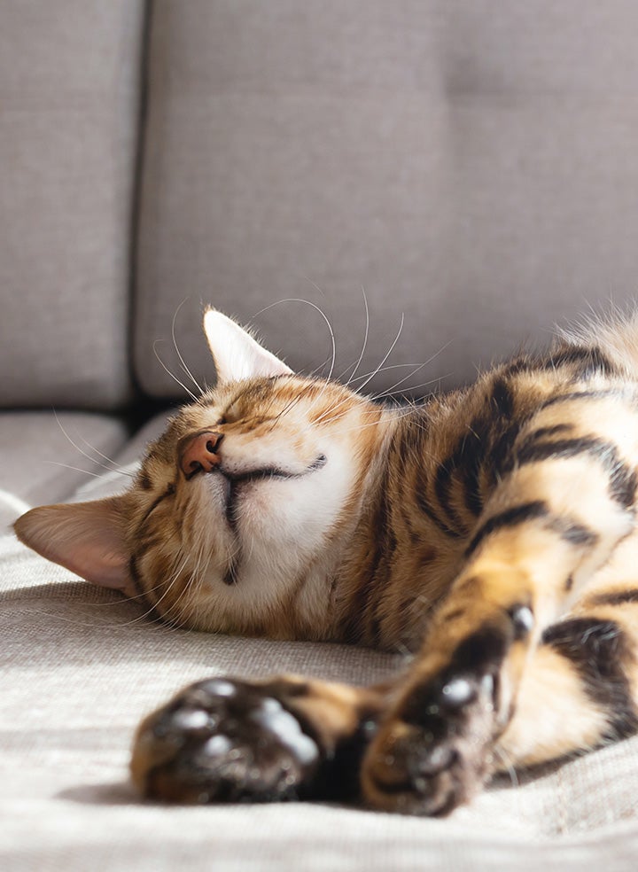 For the most part, a cat’s bone structure will fall under three categories: triangle, round, and square. Siamese and Cornish Rex can be identified by their famously triangular face that gives them sharper features. Felines with round faces can include Singapura, Exotic Shorthair, and Burmilla. Square faces can be found on breeds such as the Norwegian Forest Cat and Maine Coon.